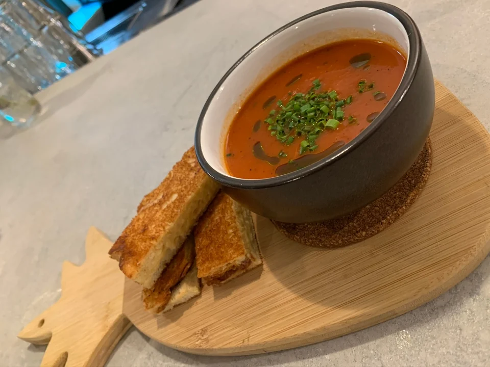 Vegan San Marzano Tomato Soup, fresh basil, served with Crusty Bread.