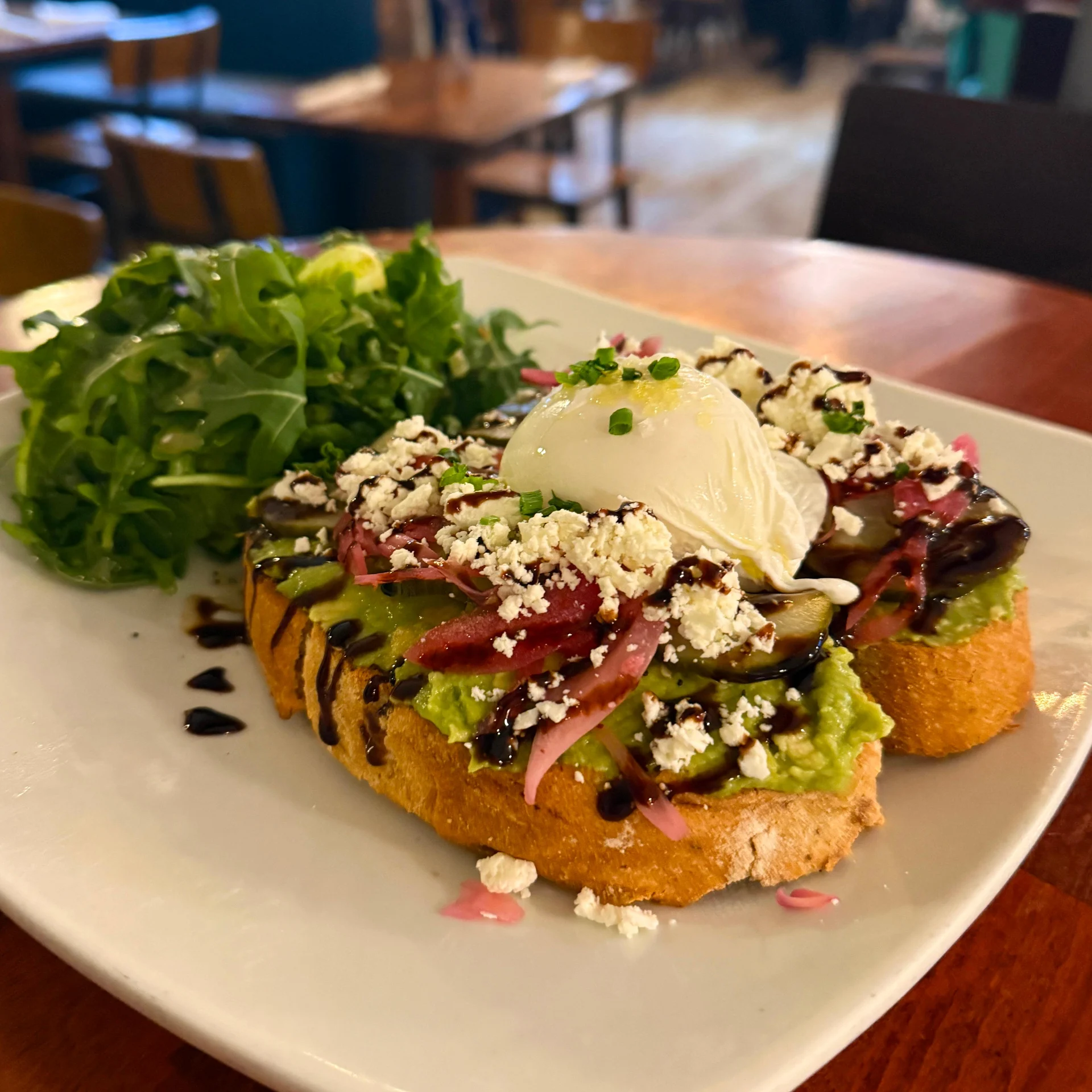 House Made Pickles, Feta Cheese, Balsamic Glaze, Everything Spice - On Capputo's Olive Bread