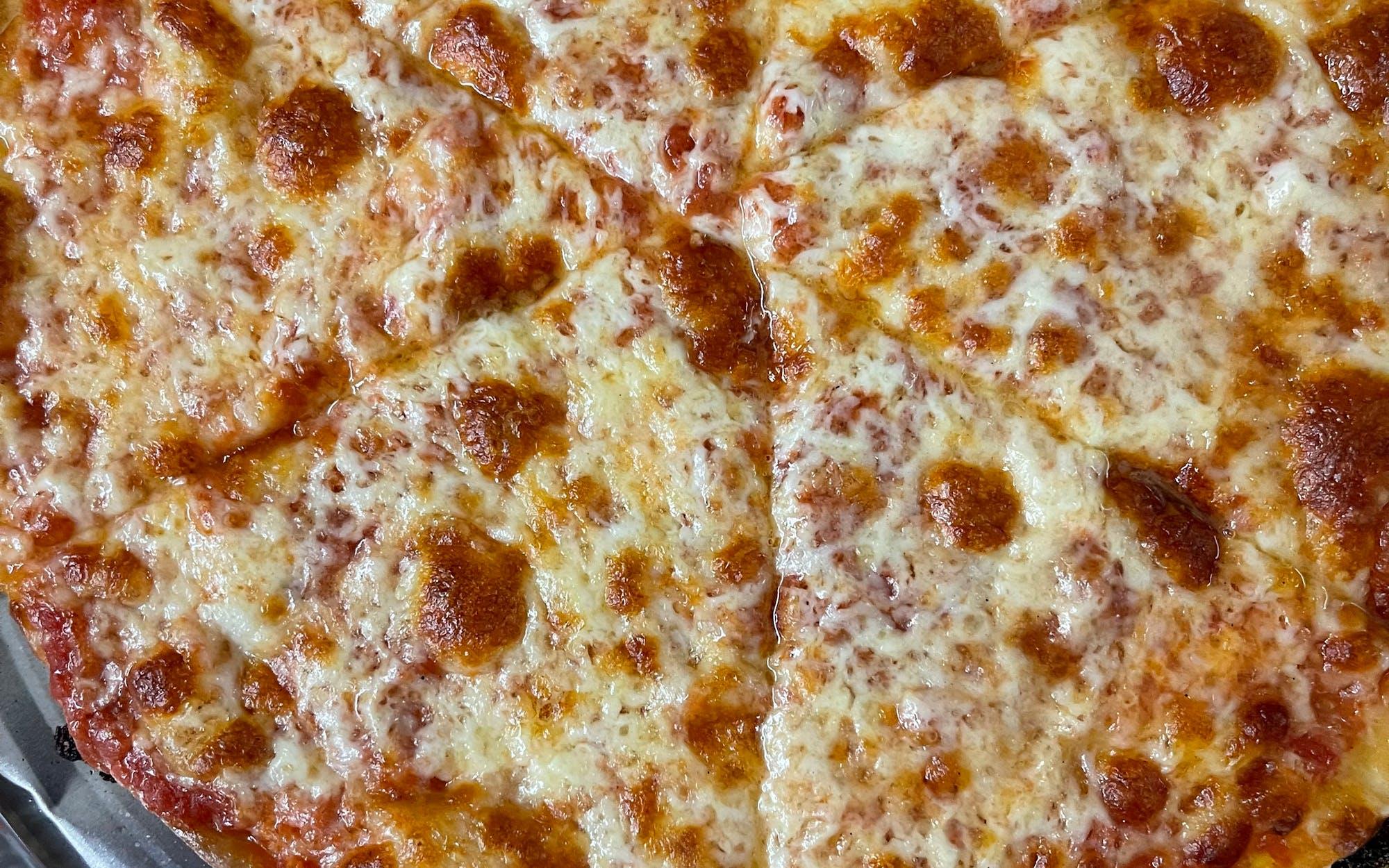 classic round pizza topped with tomato sauce and whole milk mozzarella.