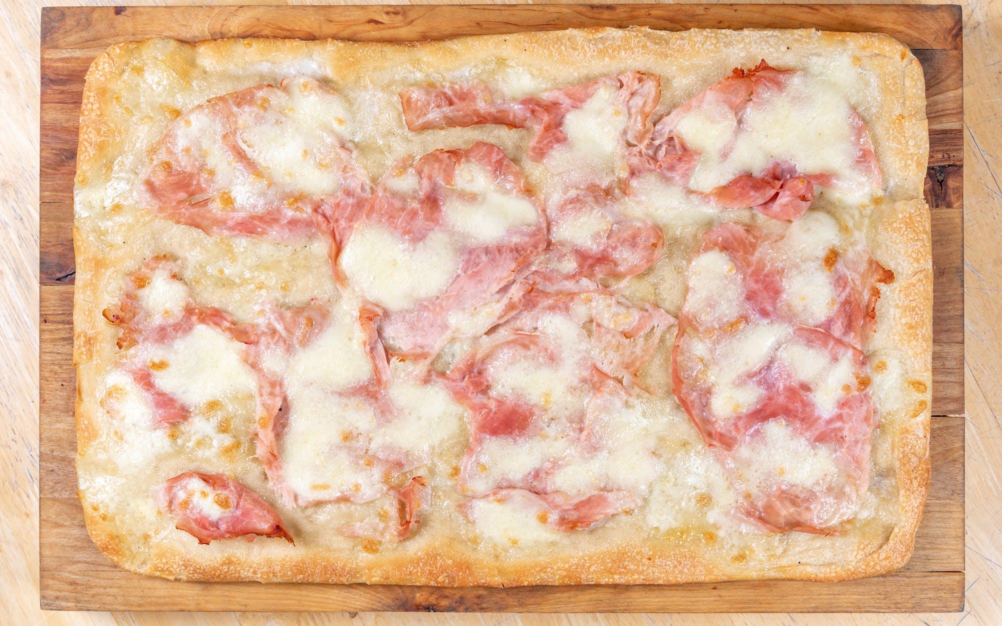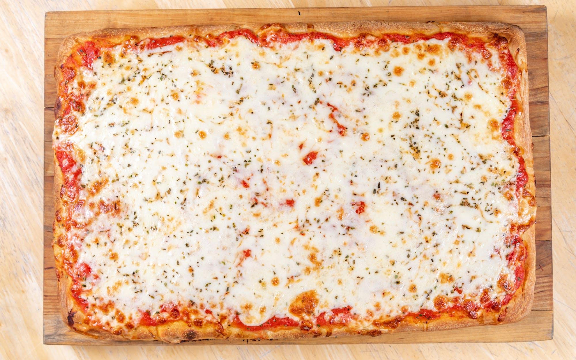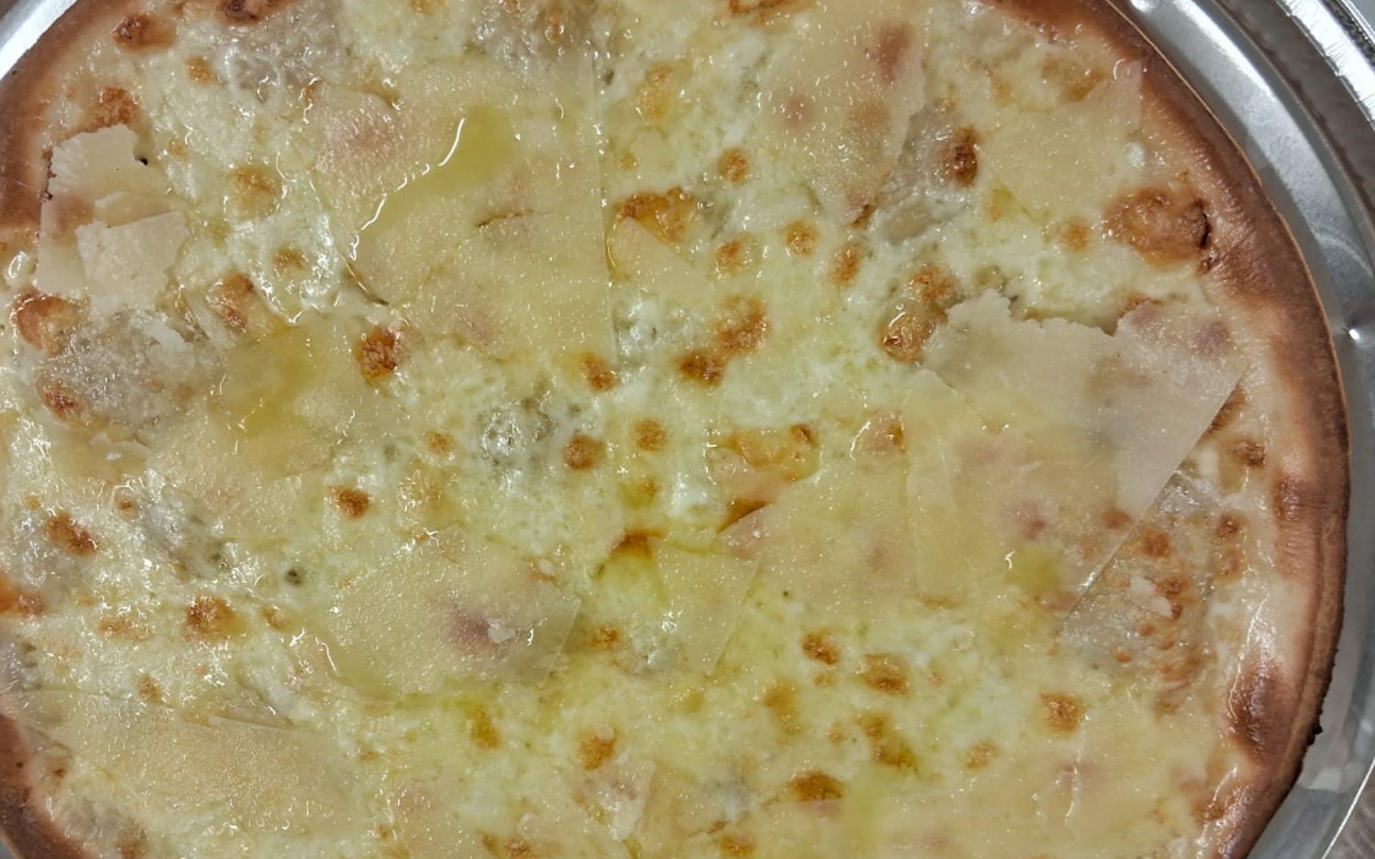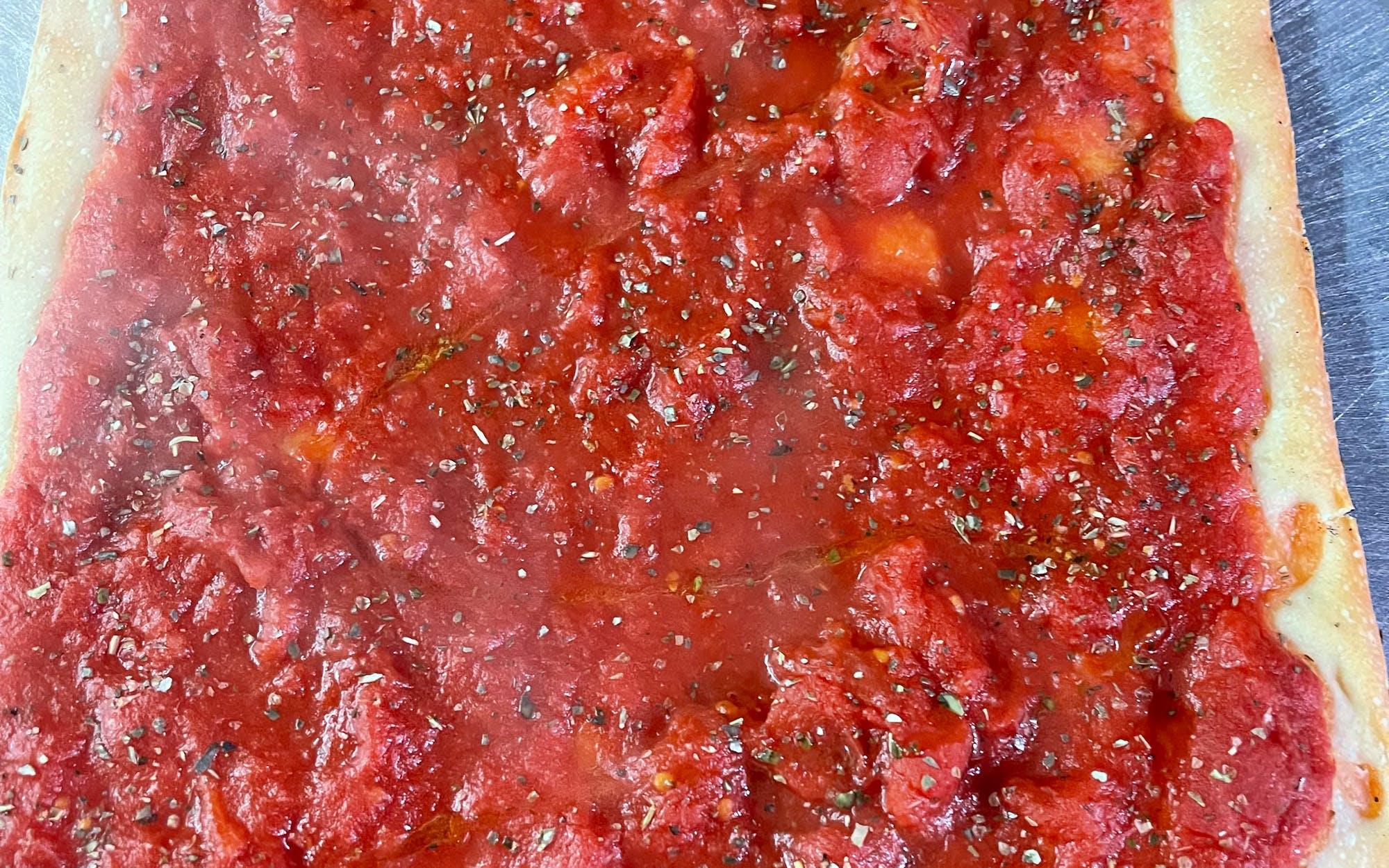classic roman round pie topped with mozzarella fior di latte and tomato sauce. no basil.