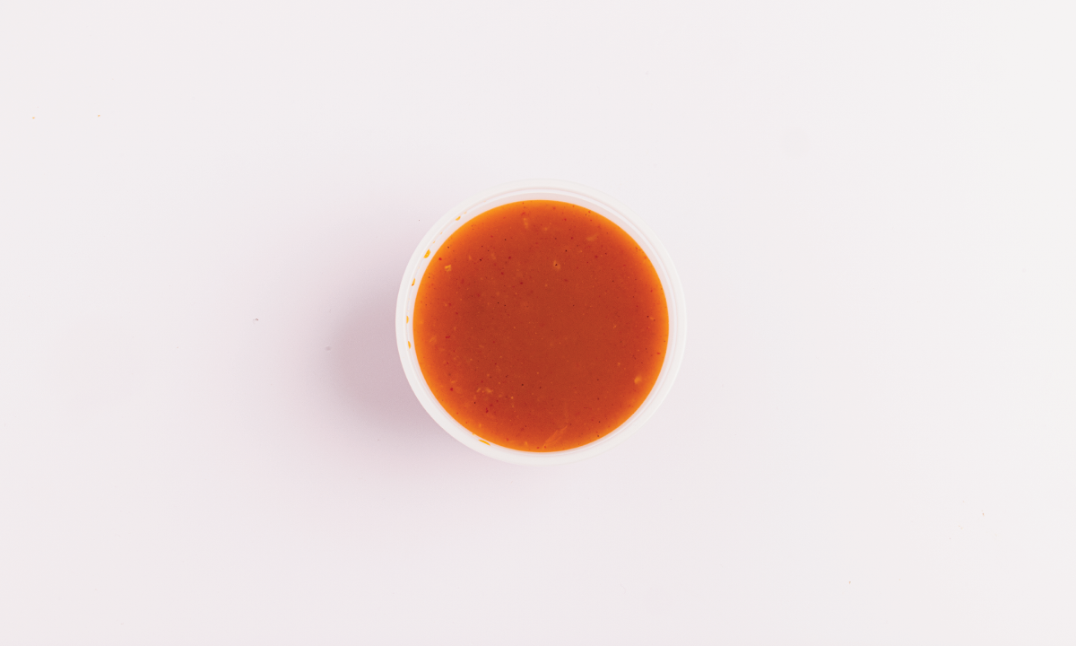 Our home-made sweet chili sauce with a vibrant red pepper base, delivering a bright sweetness and a smooth tangy finish. All extra sauces on the side come in a 3.25 oz cup.