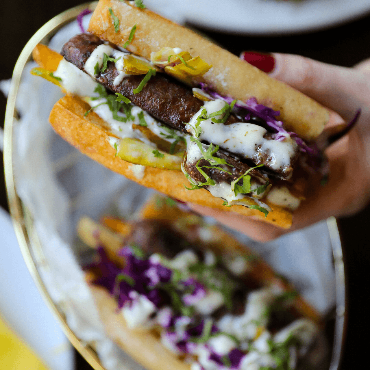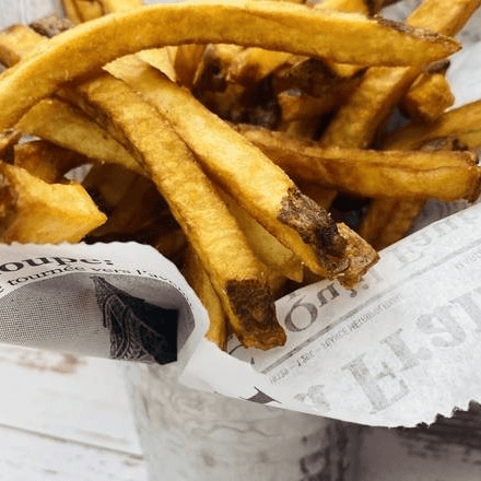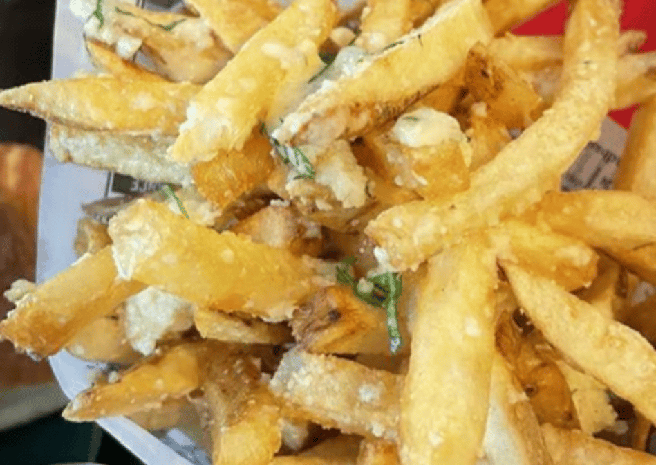 Spicy beef blend, fries, pickled cabbage, cornichons, and garlic aioli.