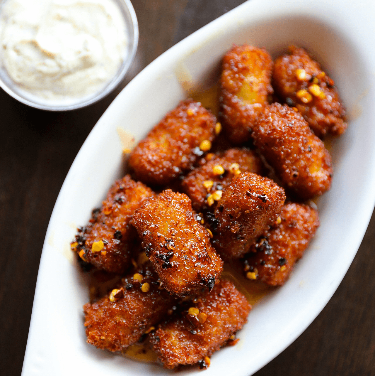 Lightly fried chicken bites tossed with aromatic herbes de Provence, drizzled with spicy honey, and served with sage-infused aioli.