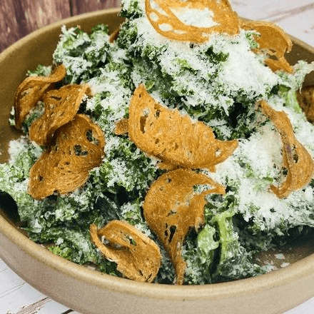 Kale, pecorino, baguette croutons, and Caesar dressing