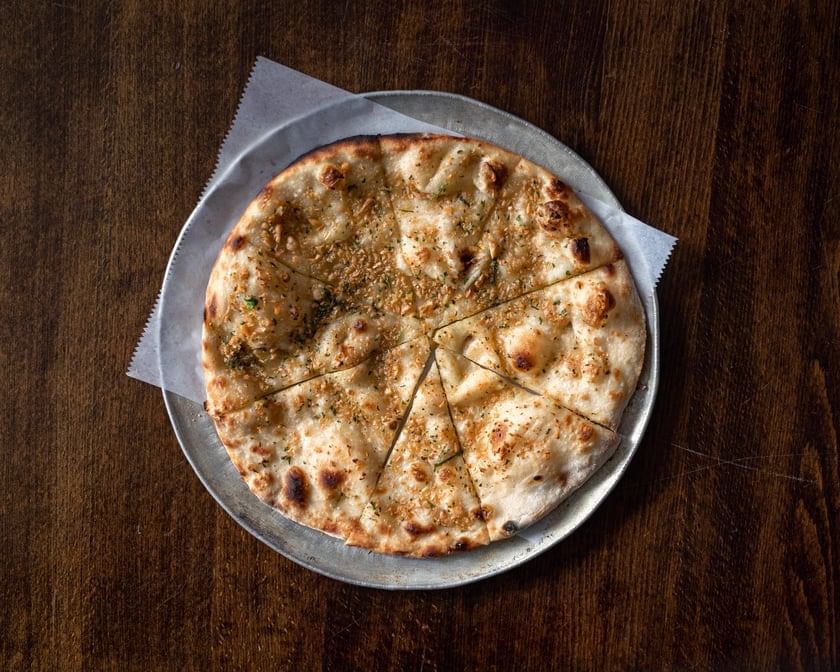 Pita topped with olive oil, fresh garlic, and parsley