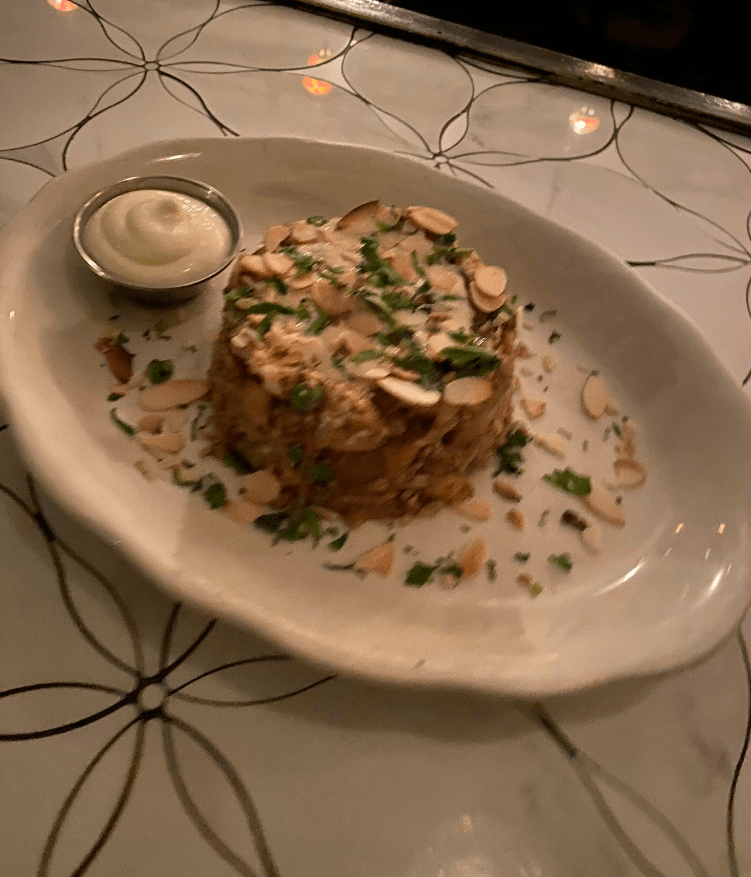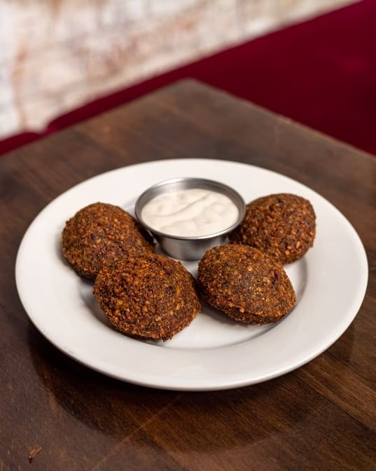 A ball of ground lamb and bulgur wheat stuffed with lamb, onions, and almonds, and deep-fried