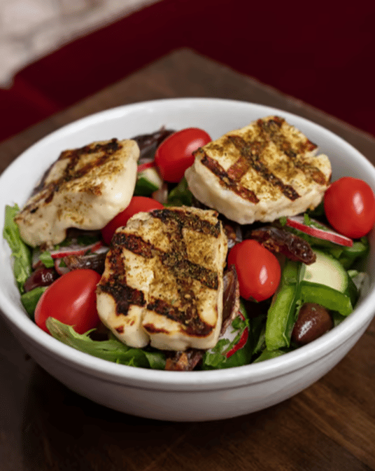 Four grilled slices of halloumi cheese