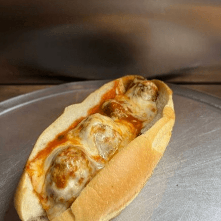 Juicy meatballs served on a hero roll.