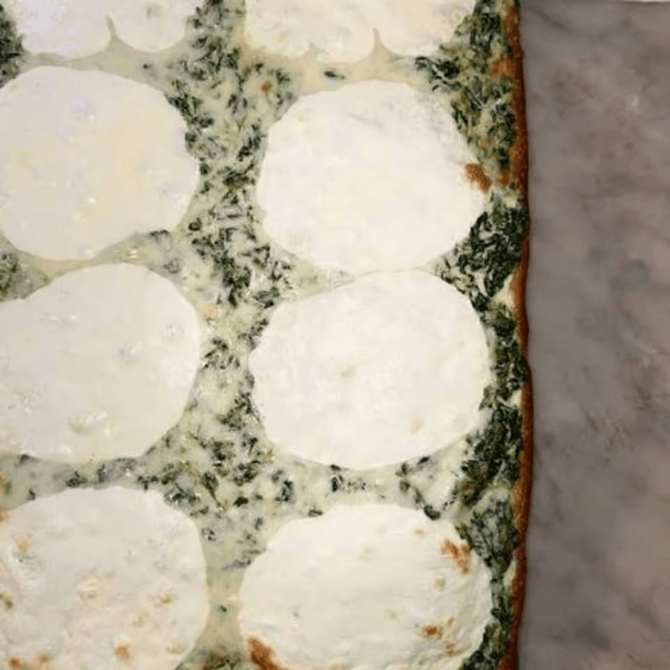 Creamy spinach, alfredo sauce, fresh mozz, pecorino