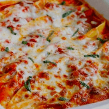 Ricotta-stuffed pasta tubes, baked with a layer of melted mozzarella for a cheesy delight.