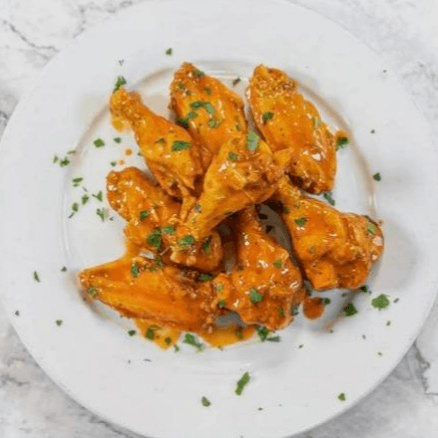 5 pcs. Five juicy wings served with a side of creamy blue cheese dressing.