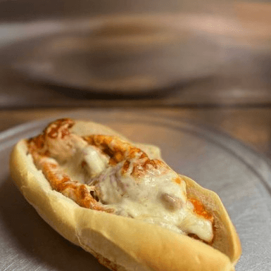 Tender veal cutlet served in a hero sandwich.
