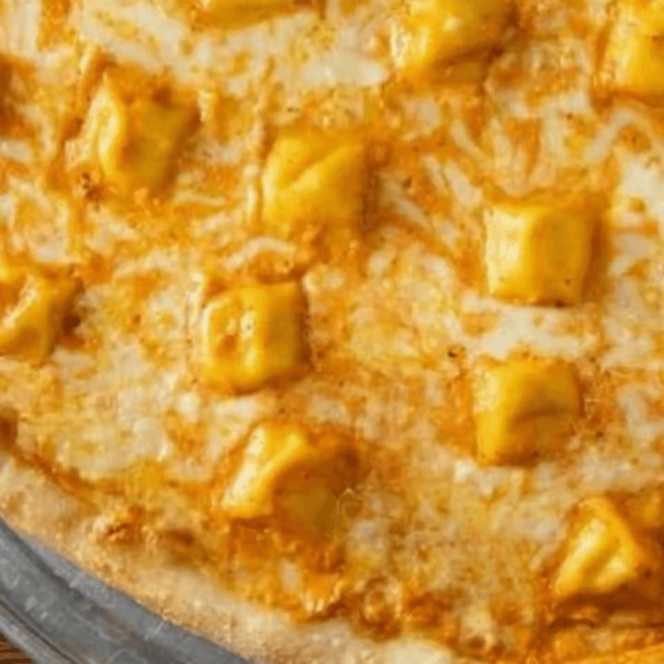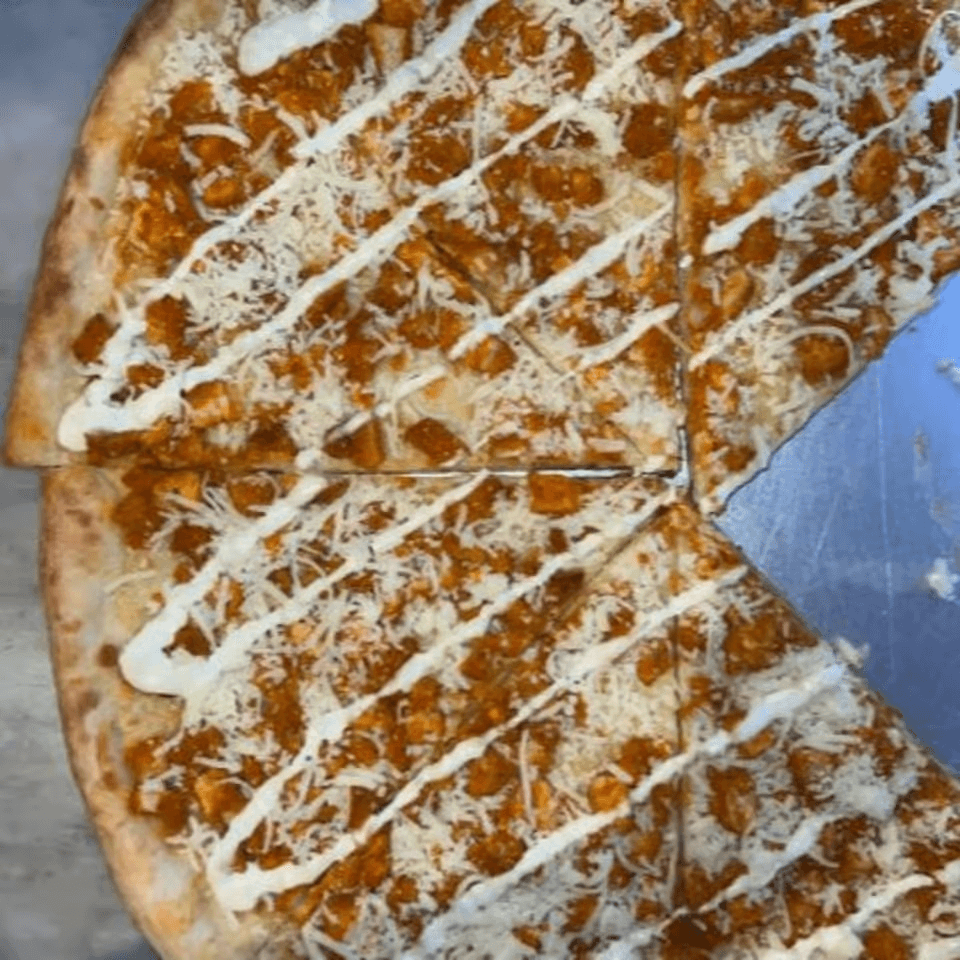 Spicy chicken, mozzarella, and blue cheese.