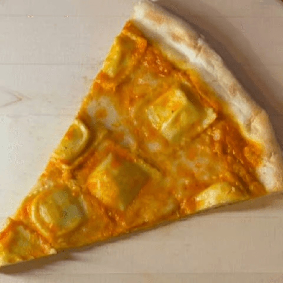 Tender ravioli filled with flavorful ingredients on a slice of pizza.