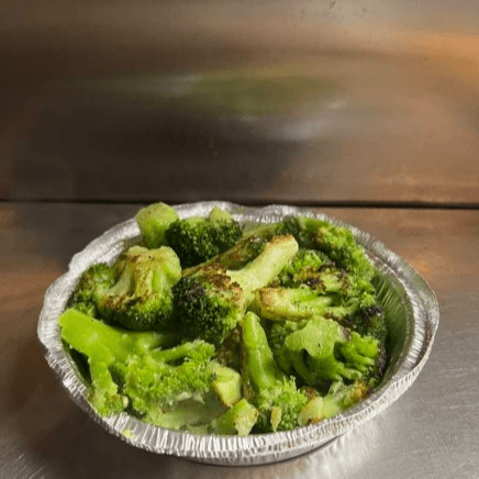 Sauteed broccoli florets, tender and simply seasoned.