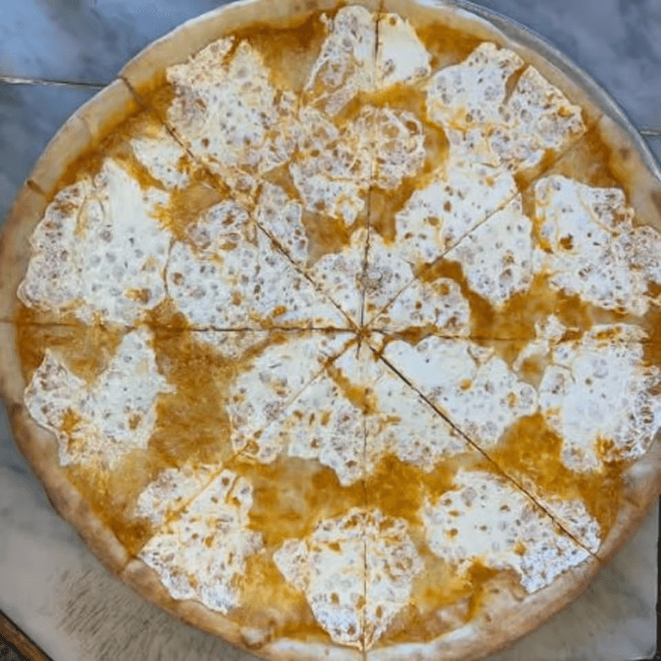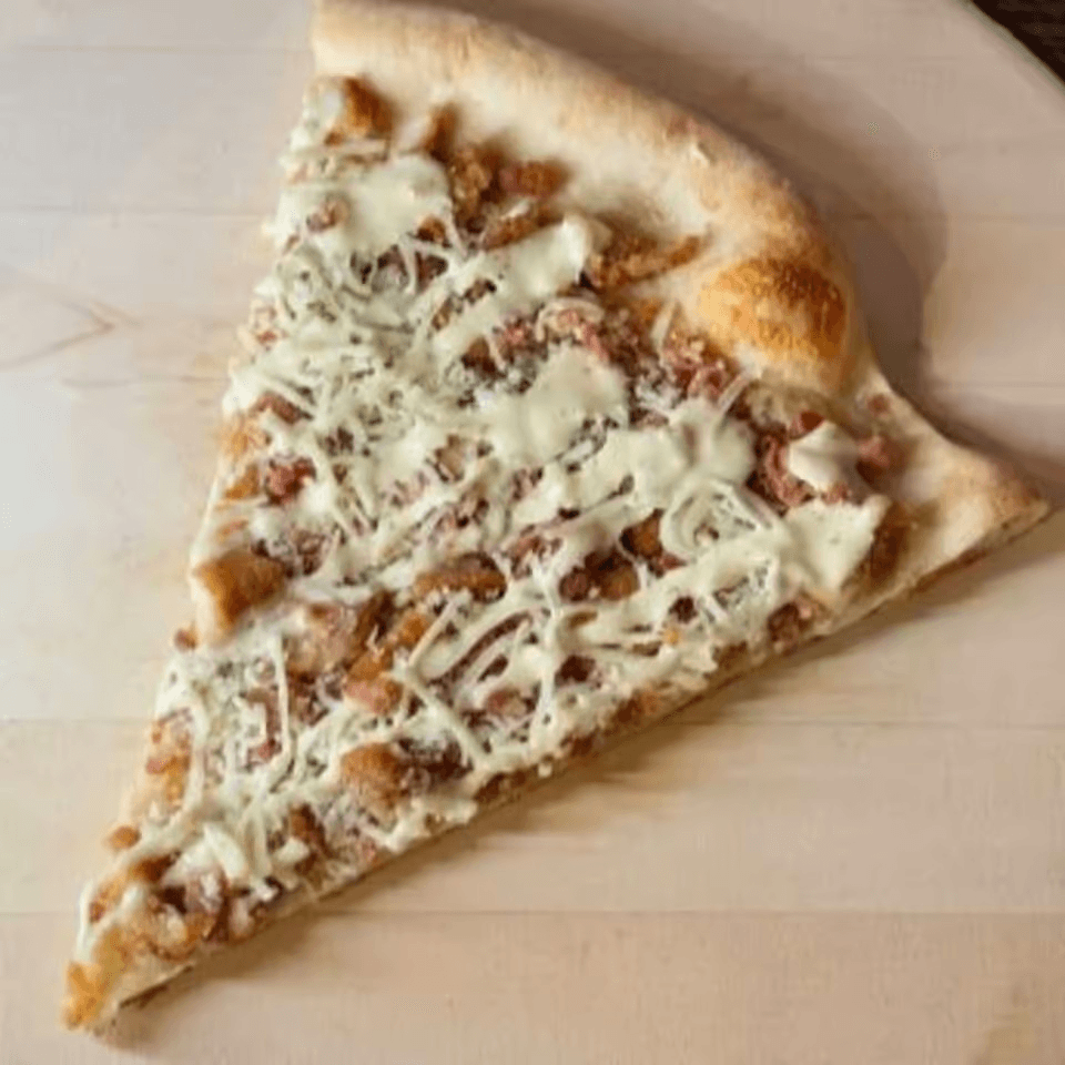 Creamy vodka sauce and melted mozzarella on a classic slice.