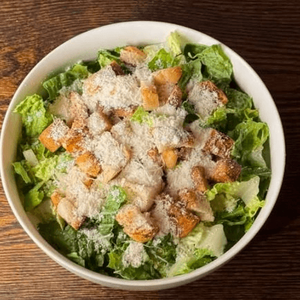 Crunchy romaine lettuce tossed with parmesan cheese and a tangy dressing.