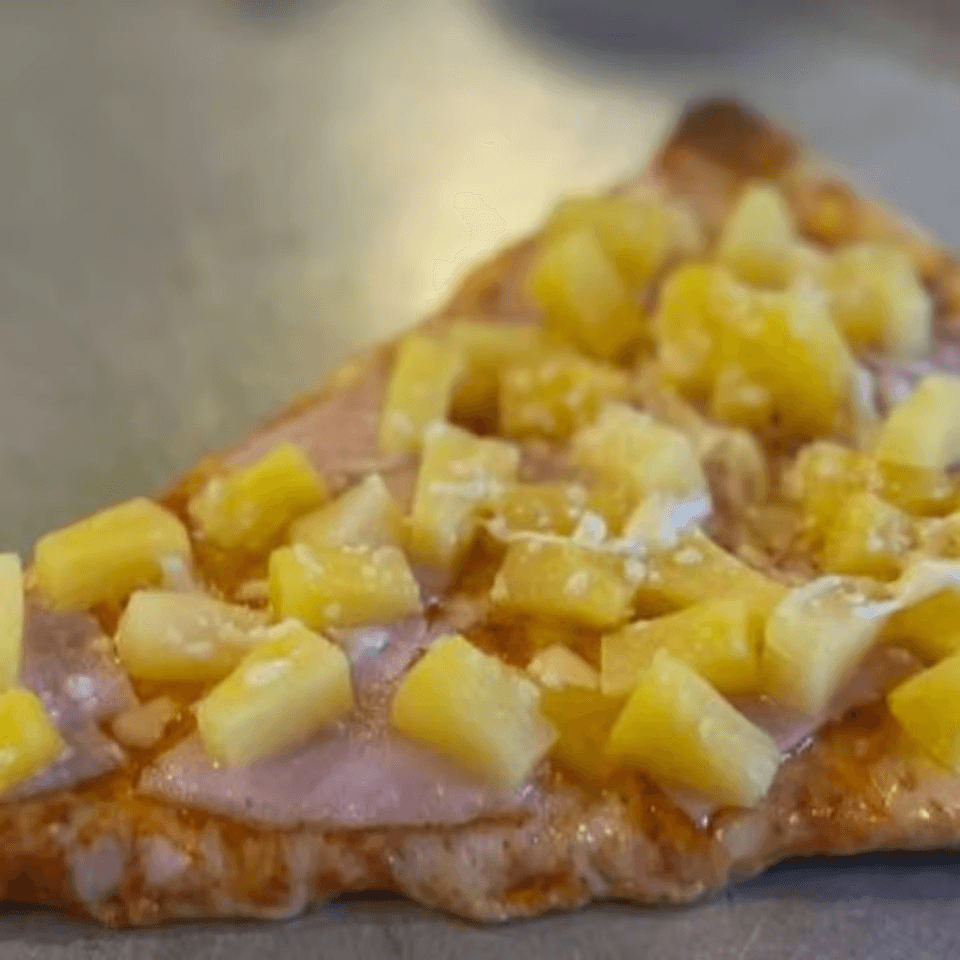 Ham and pineapple pizza with a sweet and savory twist.