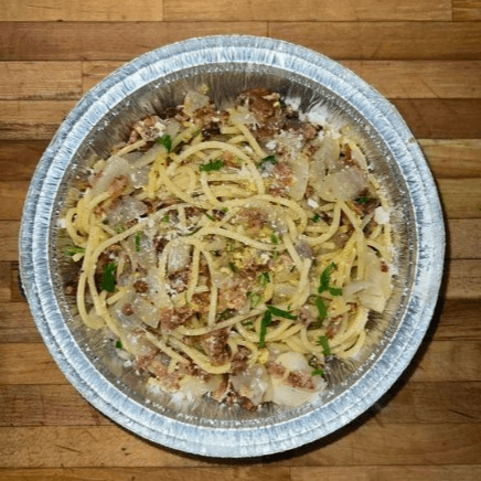 An old-time classic. Allayer of sautéed onion topped with toasted breadcrumbs olive oil and parmigiana Reggiano.