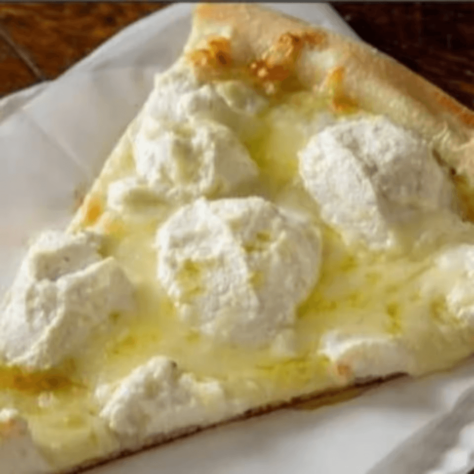Fresh and flavorful pizza slice with a white base.