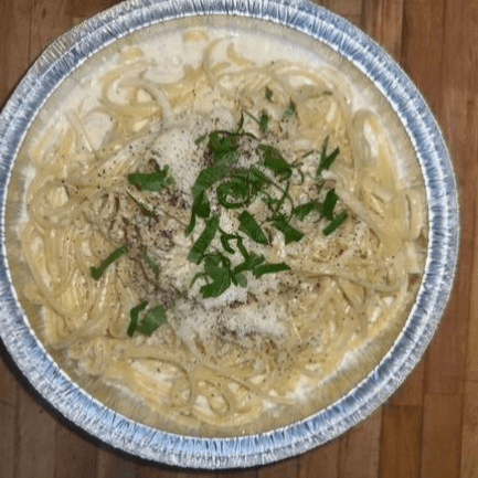 Linguine tossed in a rich, creamy Alfredo sauce with Parmesan.