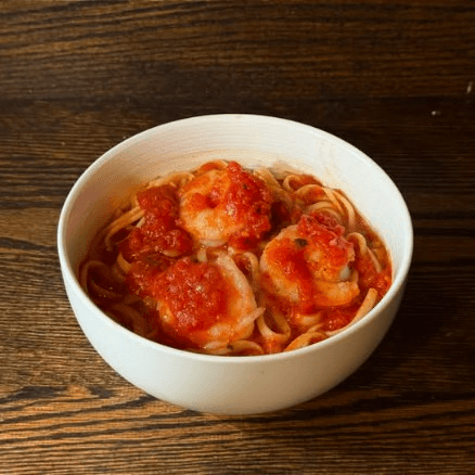 Succulent shrimp in a rich marinara sauce served with linguini.