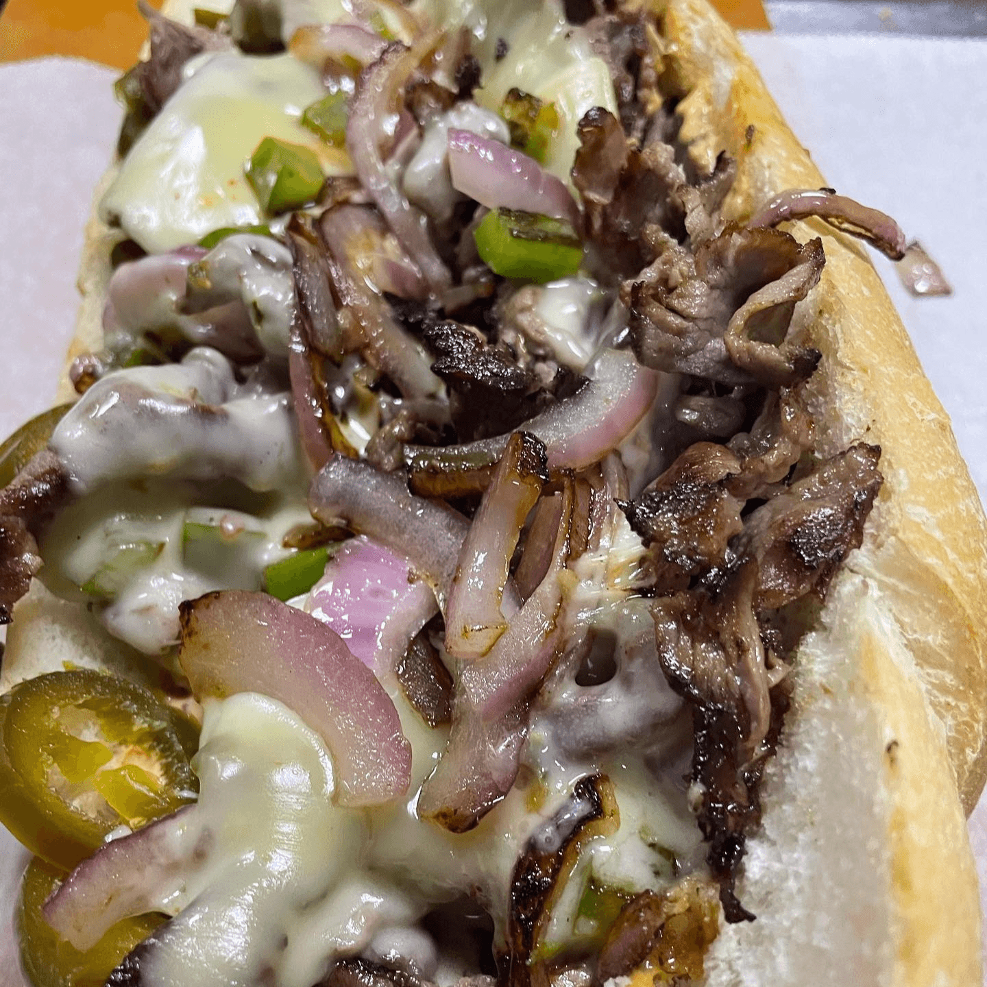 Thinly sliced sirloin, onions, peppers and cheddar cheese grilled to perfection