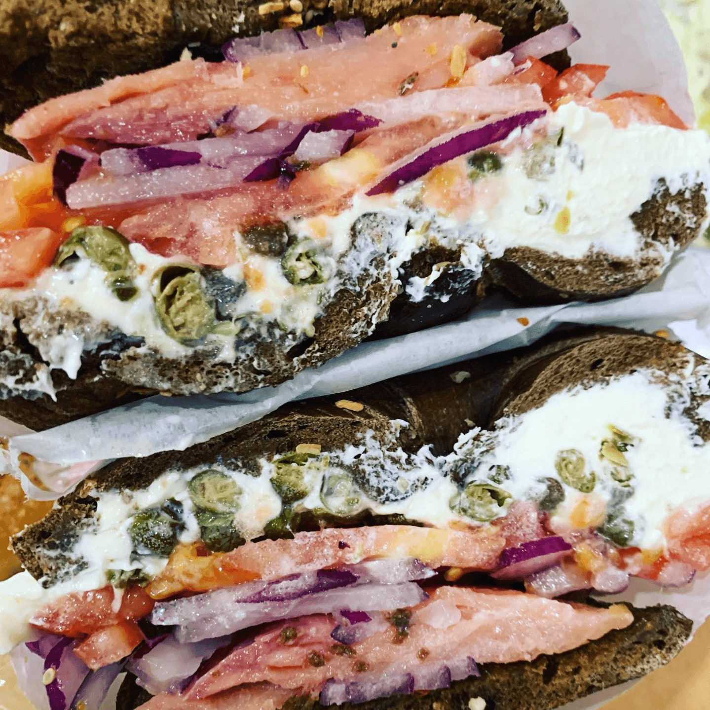 Nova lox on a bagel with your choice of cream cheese and toppings
