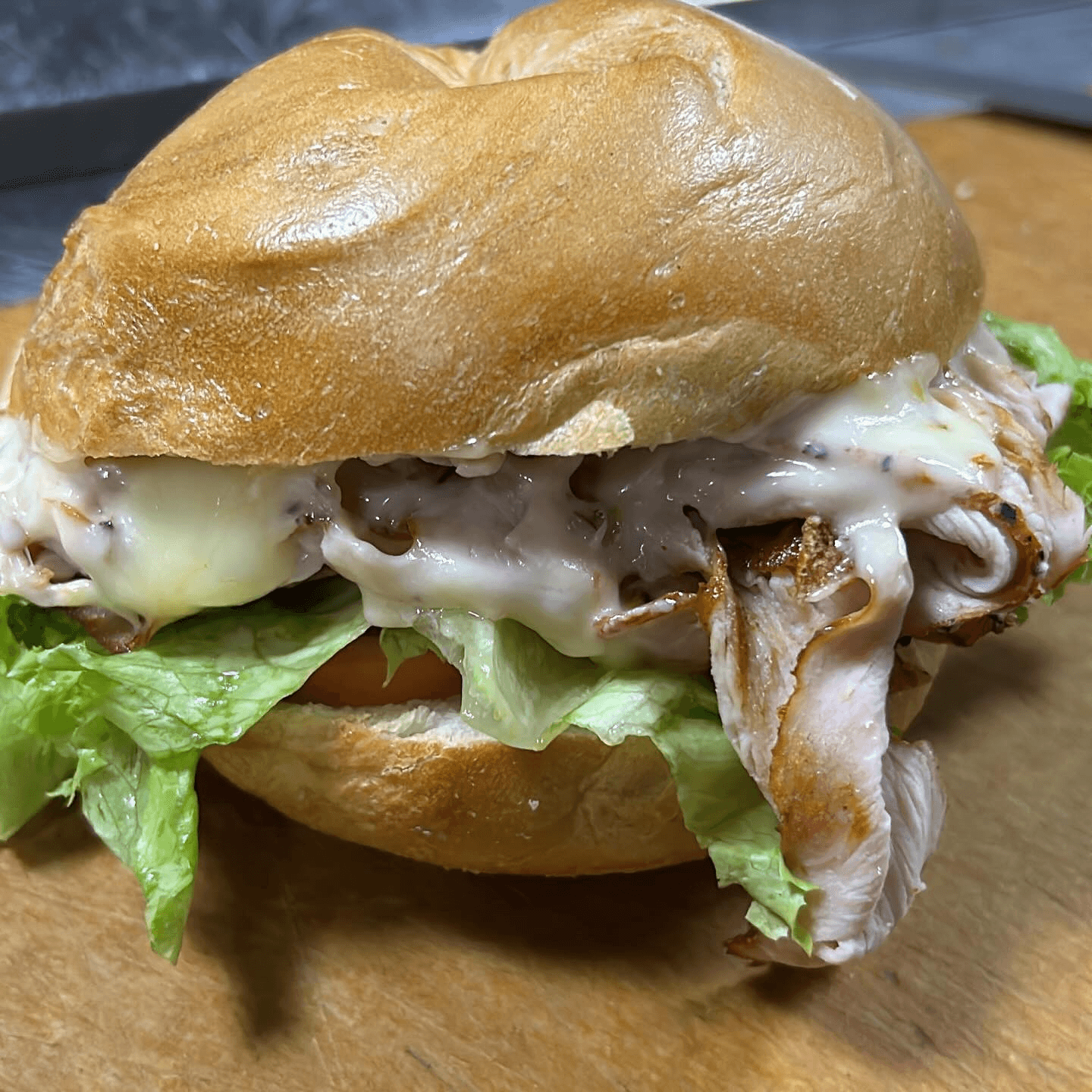 Chicken salad, bacon, spicy Jack cheese, avocado on an everything bagel