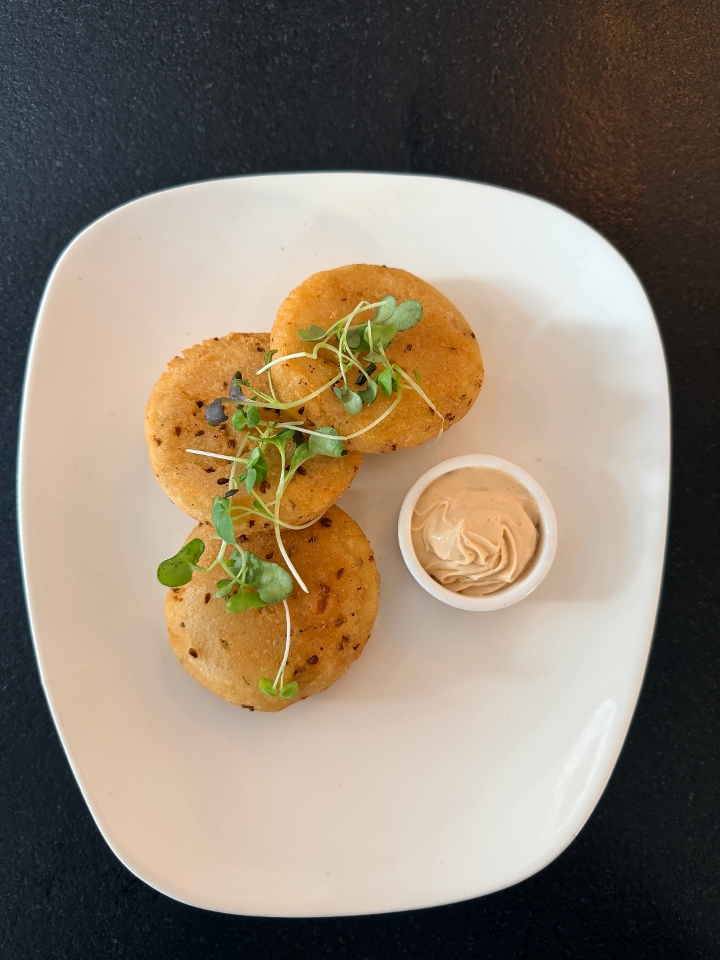 Delicate corn cakes infused with aromatic Anise with a guava lime butter