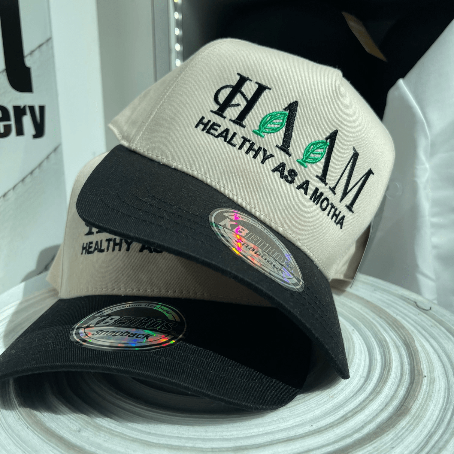 HAAM stitched branding Flat brim cap combined comfort and style. Available in three colors.