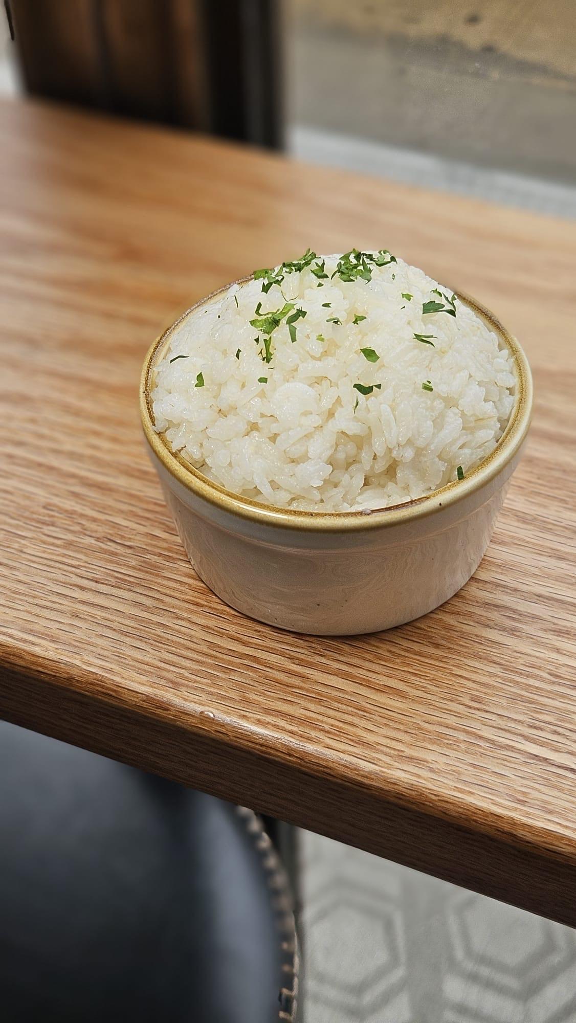 Fluffy white rice infused with savory garlic aroma