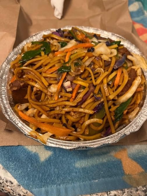 Vegan noodles with chick'n protein and fresh vegetables / with salad (only)