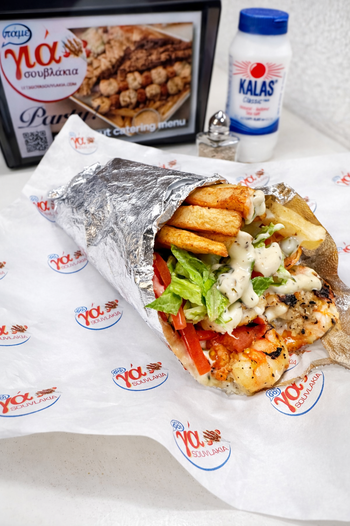 Beef-tomatoes and red onions with tzatziki sauce Chicken-lettuce, tomatoes and YA sauce