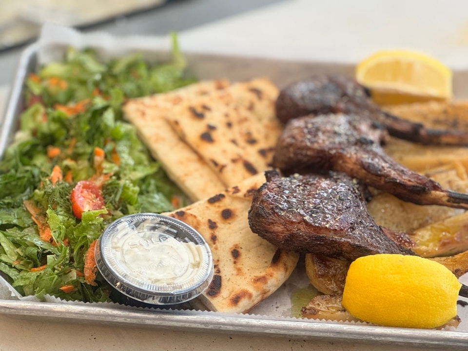 3 juicy grilled lamb chops served over lemon potatoes & small marouli salad, pita bread, tzatziki sauce