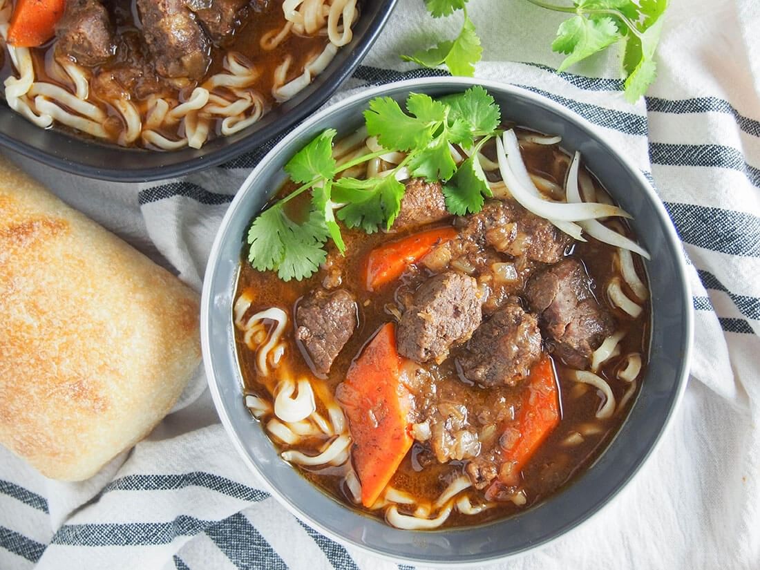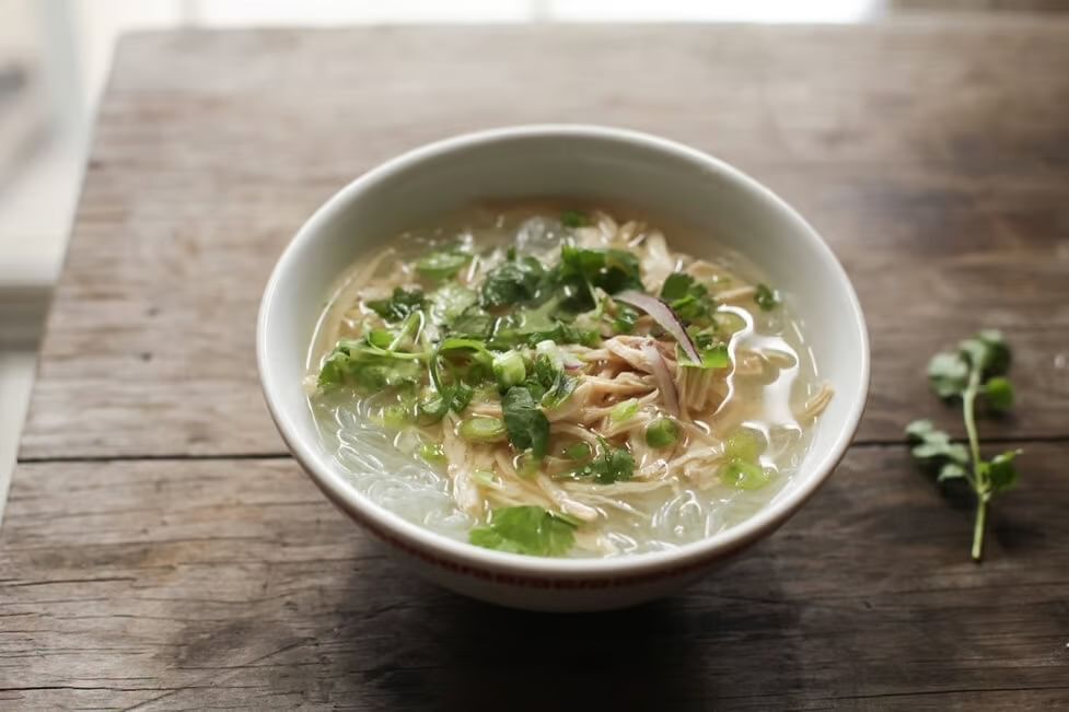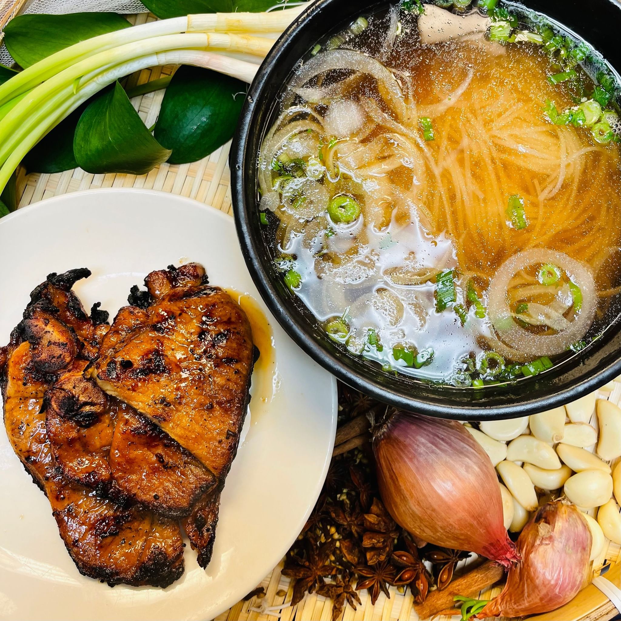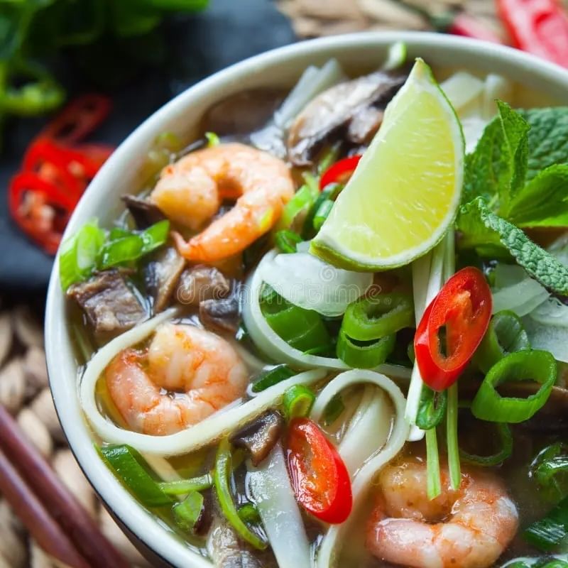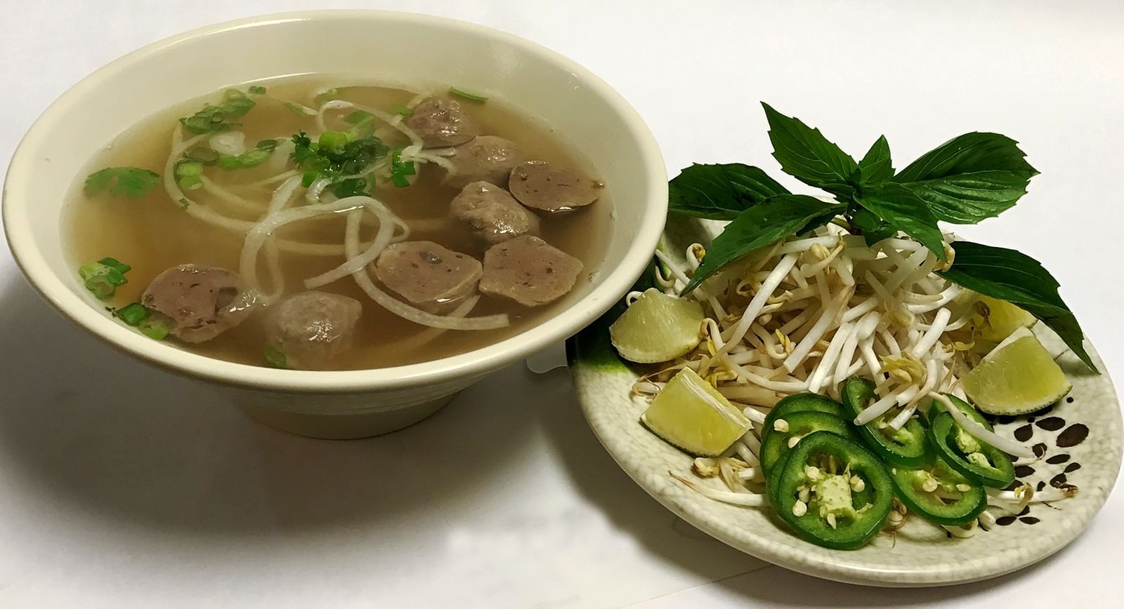 Rice noodles beef soup with fresh eye of round, navel, and tendon