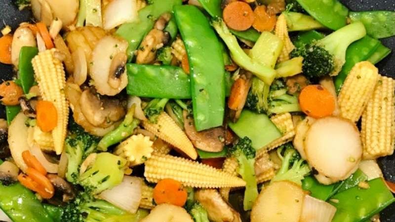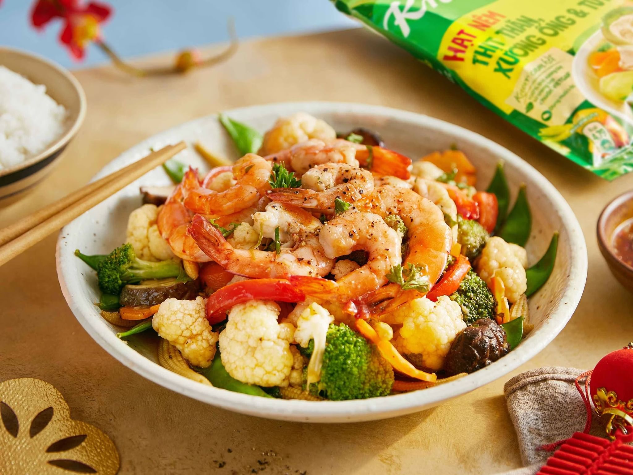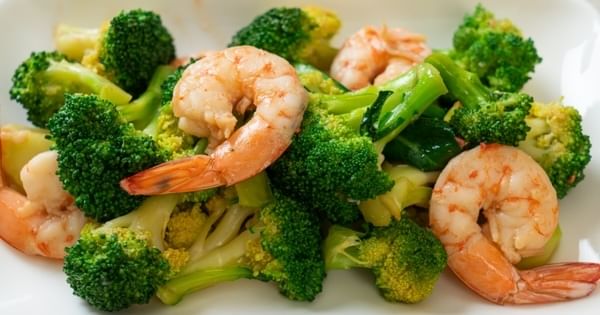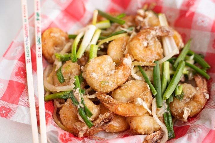 Shrimp with a little salt, green pepper, onions, and oyster sauce