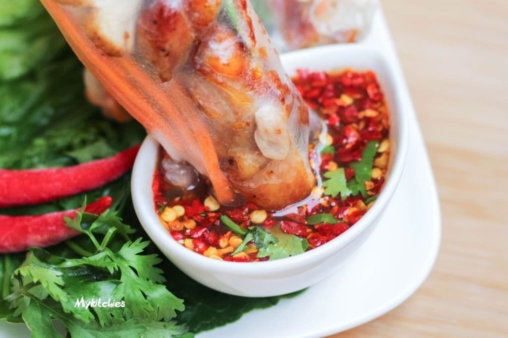 2 rolls. Summer roll BBQ pork, or BBQ chicken or BBQ beef vegetable wrapped with rice paper