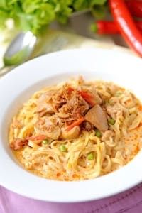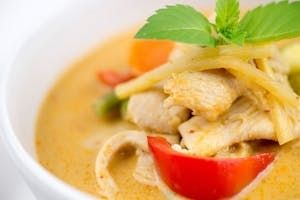 Coconut milk, bamboo shoots, mixed vegetables, basil leaves and chili pepper