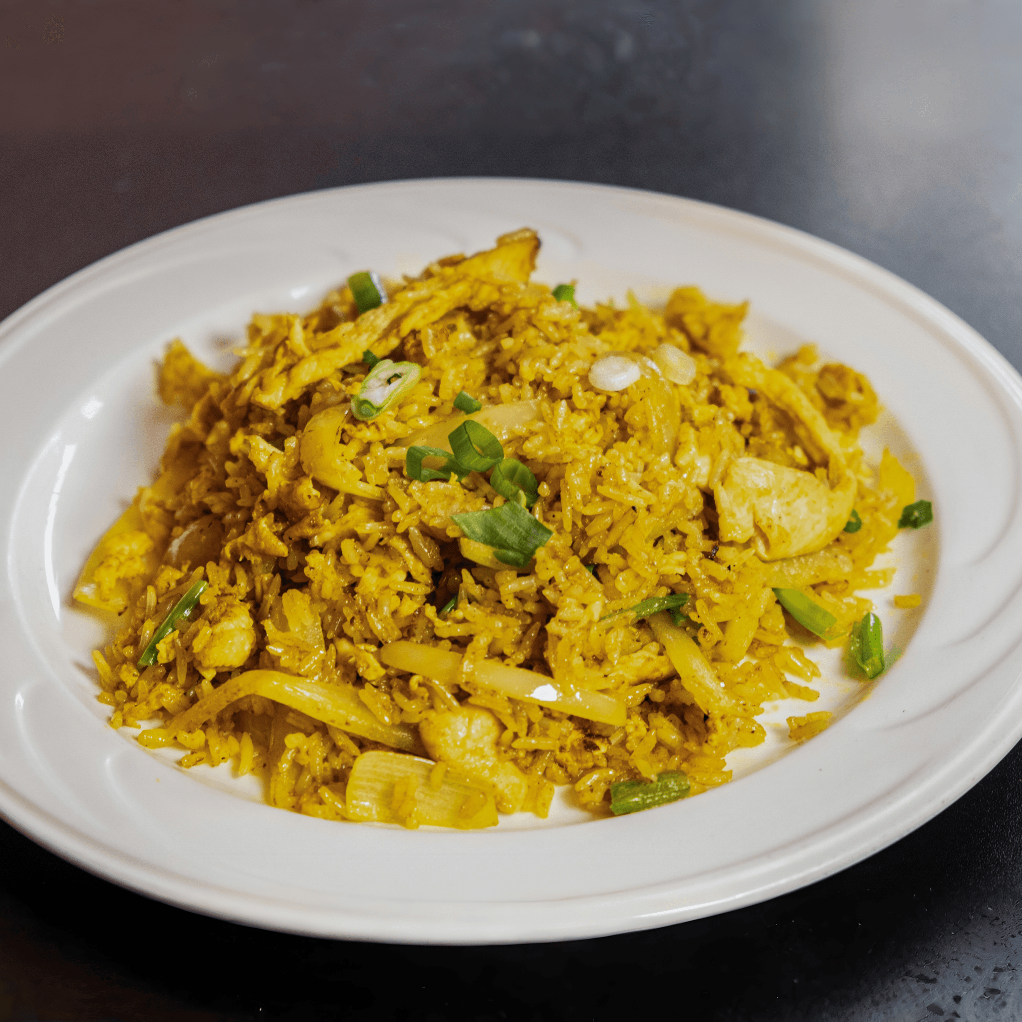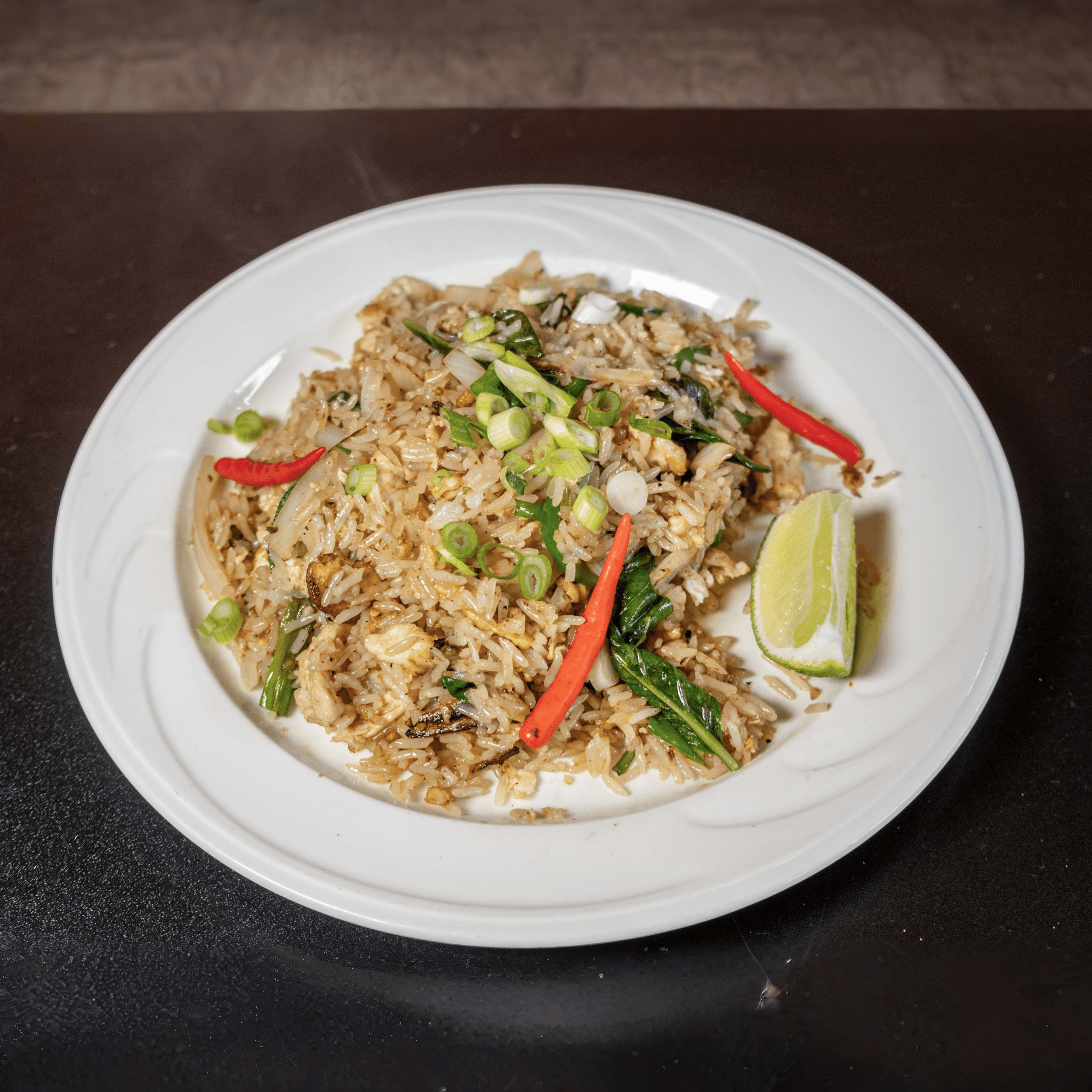 Spicy fried rice with basil, onion, and chili pepper. served with soup or salad (does not come with a side of rice)