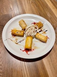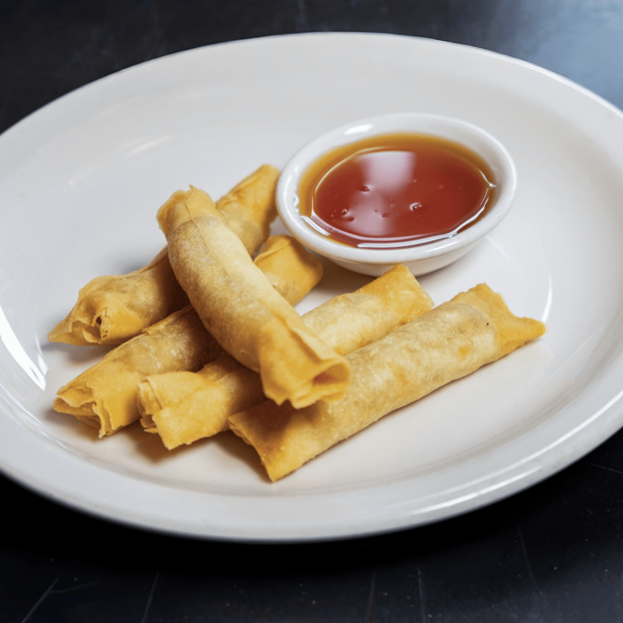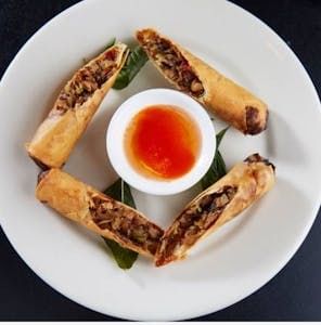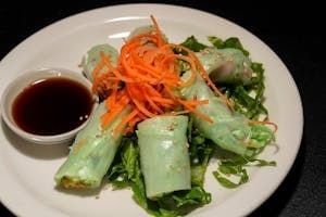 Avocado, shredded vegetables, thin noodle wrapped in rice skin, served with soy vinaigrette