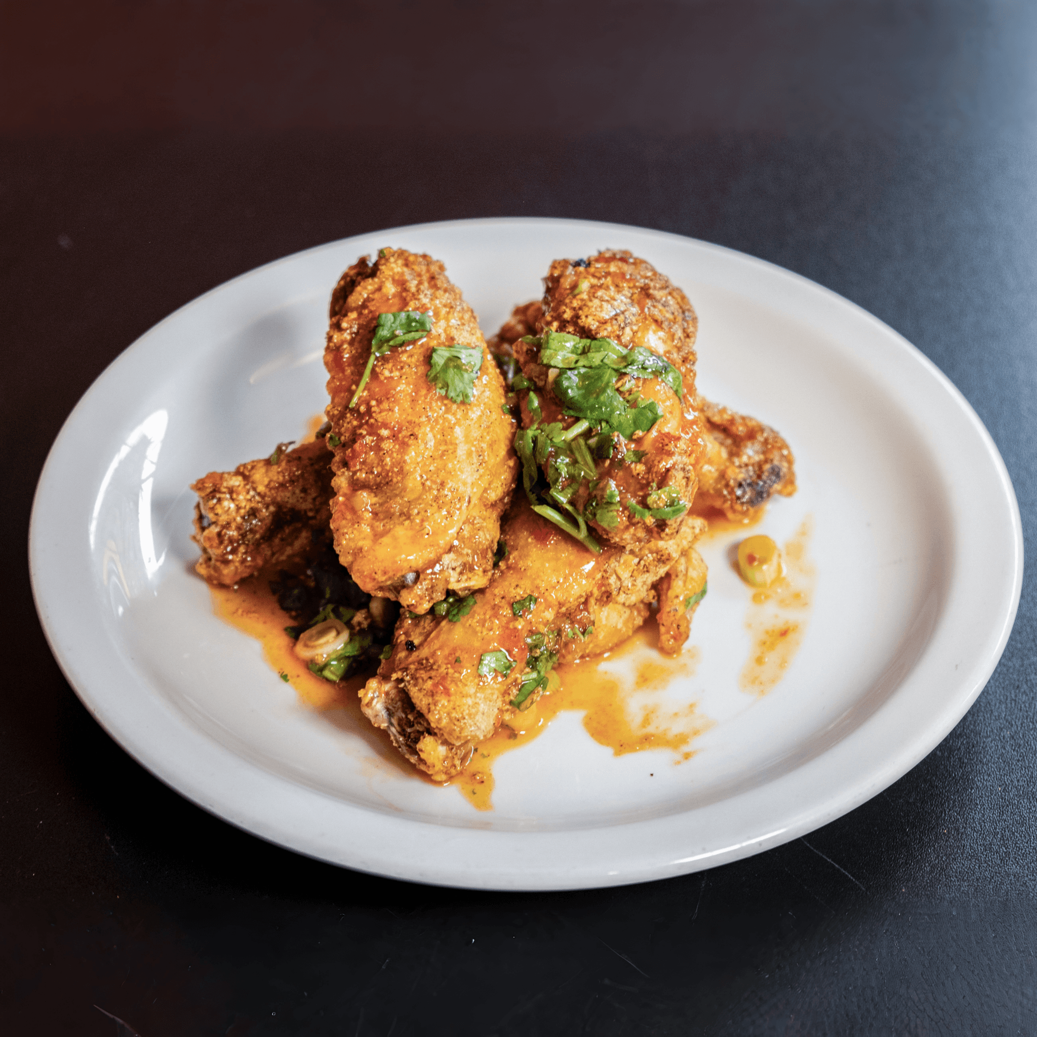 Deep fried half chicken sauteed in a garlic-black pepper sauce served with salad