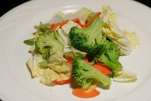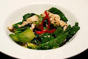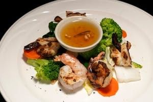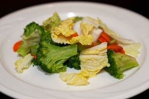 Served with a chili-garlic sauce over sauteed mixed chinese vegetables