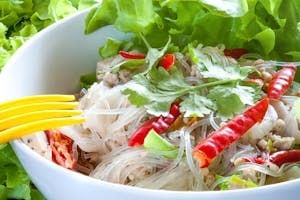 Bean thread noodle with ground chicken, ground shrimp, scallions, onions, chili peppers and lime juice