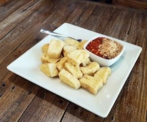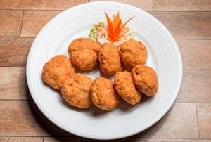 Fried fish cakes, served with cucumber sweet spicy sauce
