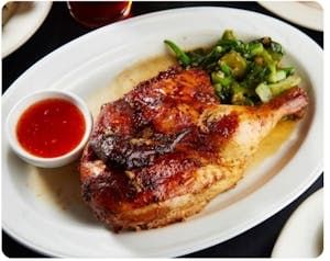 Thai-style barbecue chicken served with sweet chili sauce. served with white rice and your choice of soup or salad