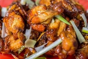 Sliced crispy duck sauteed with tamarind sauce. served with salad