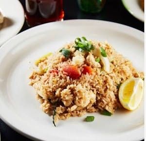 Spicy fried white rice with tomatoes, onions, egg, scallions, and chili pepper. served with soup or salad (does not come with a side of rice)