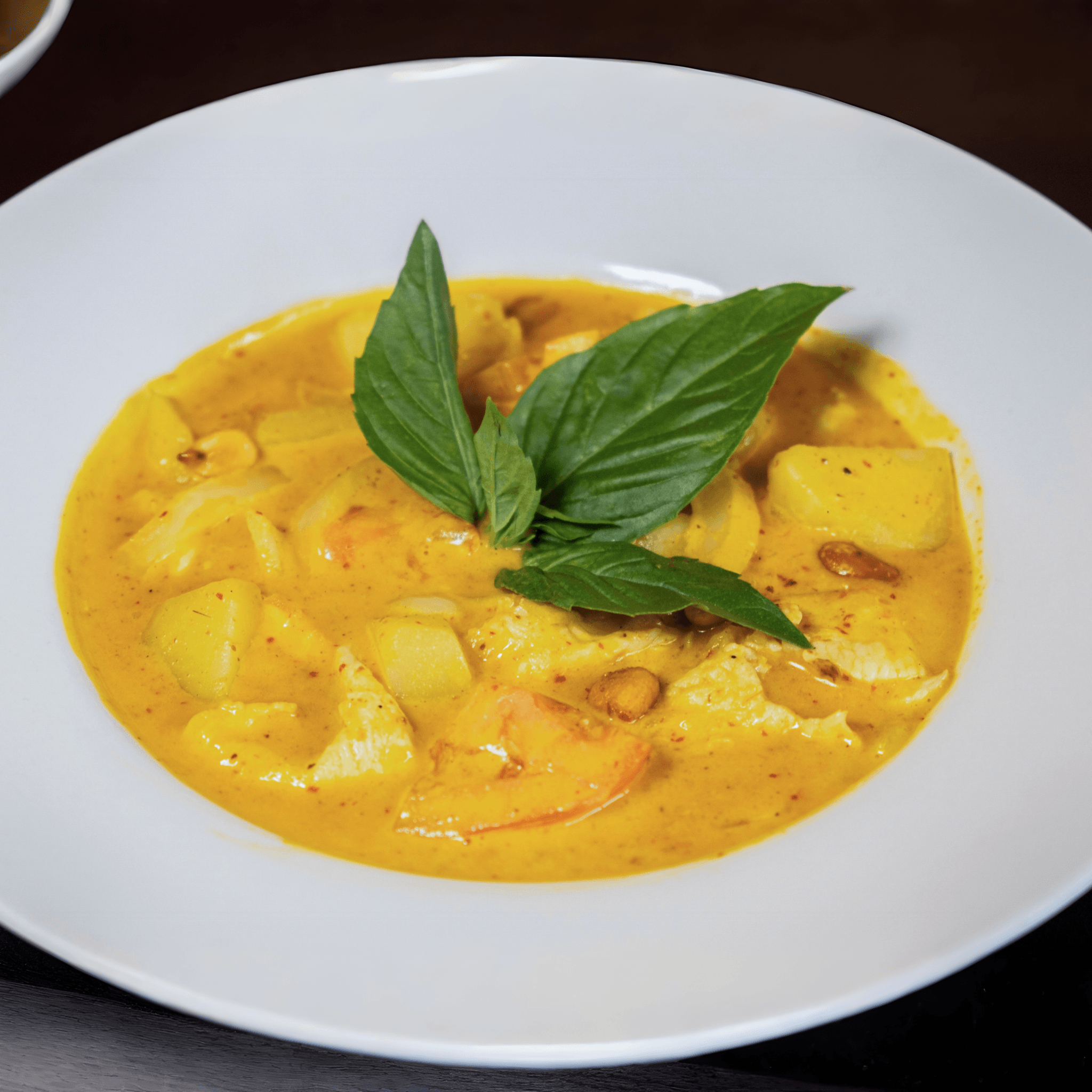 Mussaman curry, avocado, potatoes, onion, bell pepper and chinese broccoli