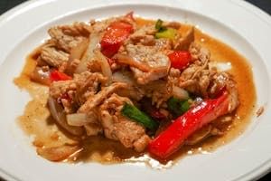 Sliced crispy duck sauteed with basil, onions, chili peppers